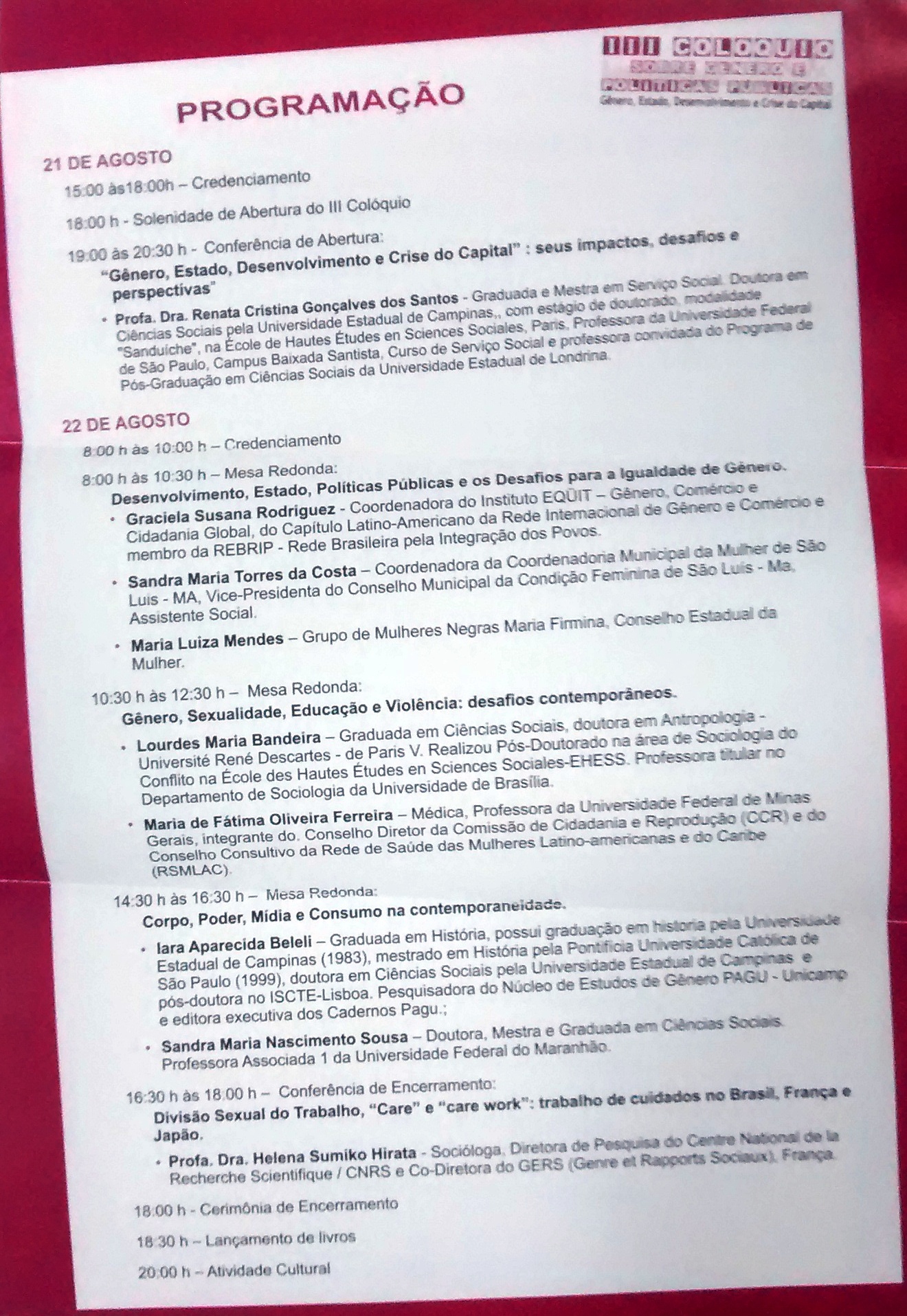 Tema: Gênero, Estado, Desenvolvimento e Crise do Capital